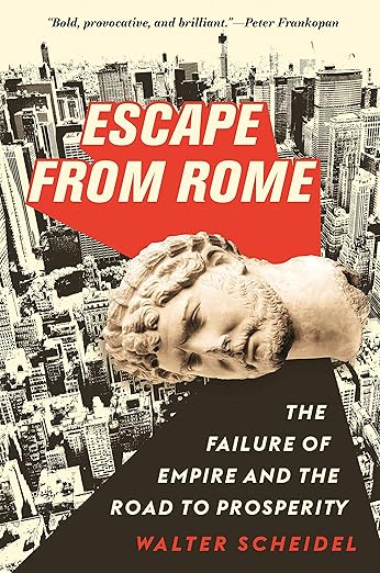 Scheidel, Walter. 2019. Escape from Rome: The Failure of Empire and the Road to Prosperity. Princeton Univ. Press. 527 pages.
